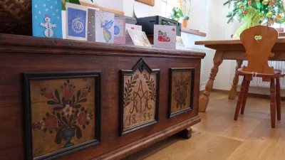 Osrednji prostor krasi lesena poslikana skrinja iz leta 1854, v črni kuhinji je stara mentrga, ki je v hišo prišla z drugega konca vasi, izdelal pa jo je Slavičin dedek po drugi krvni liniji. V kopalnici visijo zavese, sešite iz prta, ki ga ji je nedokončanega zapustila teta, v spalnici je pohištvo njene babice, okvirji starih slik zdaj uokvirjajo ogledala. »Skozi predmete sem tako v hišo vrnila ljudi, ki so na domačiji nekdaj živeli,« je pristavila. Leta 2018 je za obnovo prejela tudi priznanje Šole prenove, ki ga za zgledno obnovljeno zaščiteno dediščino podeljujejo Zavod za varstvo kulturne dediščine RS, Združenje zgodovinskih mest Slovenije in Fakulteta za arhitekturo.