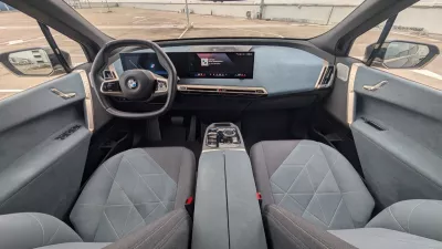 BMW iX v notranjosti ni načičkan in ohranja prostornost. Tako zelo, da ji nekateri pravijo celo dnevna soba. Hkrati se izogne minimalistični puščavi. Ne boji se ornamenta, tam, kjer ta ustvari dober vtis. Razume voznika, kaj potrebuje in česa ne. Vsaj večinoma. Tudi pri snovanju iX so oblikovalci namreč nasedli zablodi o selitvi večine ukazov za funkcije s fizičnih gumbov na zaslon, a vseeno ohranja vsaj nekaj taktilne poezije. Zlasti čvrsta ročka za smerna kazalnika se premika z užitkom. Izkažejo se tudi kolesca in gumbi na sredinski konzoli.