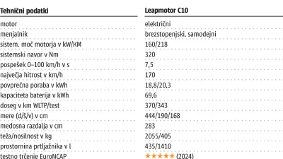 Pod črto je leapomotor C10 zapleten avto. Zunaj in znotraj deluje dokaj znanstvenofantastično sofisticirano. Je zelo prostoren in pisan na kožo družini, ki veliko potuje. Mu pa odsotnost vzdolžno drsne klopi in zgolj v redu prtljažnika omeji dopustniško vsestranskost. Uporabnosti avtomobila bi koristilo tudi, če ne bi poskušal biti tako drzno »napreden«. Ima pa zagotovo velikega asa v rokavu. To je njegova cena. Ta znaša 34.990 evrov. Ko temu dodamo še subvencijo, stvar postane še toliko bolj privlačna. Gre za kar nekaj električnega avta za ta denar. Majhni renault 5 stane le pol tisočaka manj.