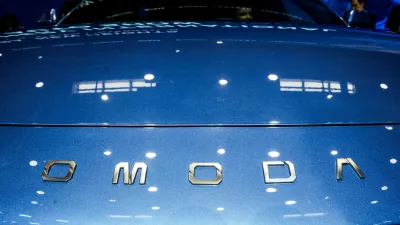 FILE PHOTO: A logo of Chery's brand Omoda appears on a car as people sit inside at the company's booth at the Beijing International Automotive Exhibition (Auto China), in Beijing, April 24, 2026. REUTERS/Maxim Shemetov/File Photo