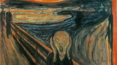 Munch je namreč v svojem dnevniku zapisal: »Nenadoma je nebo postalo rdeče kot kri, nad modro-črnim fjordom in mestom so viseli krvavi oblaki in jeziki ognja.«
