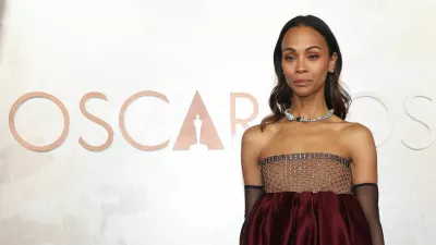 Zoe Saldana v kreaciji znamke Saint Laurent. Foto: Reuters