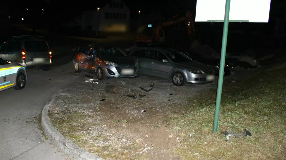 Policista sta zapeljala za njim in ga sčasoma izsledila. Moški je povzročil prometno nesrečo, v kateri je bil udeležen sam. Po navedbah policije je 40-letnik s citroenom berlingo zaradi prevelike hitrosti trčil v prometni znak in dva parkirana avtomobila.