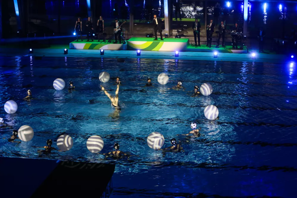 Prvi plavalci so že na otvoritveni slovesnosti preskusili olimpijski bazen.