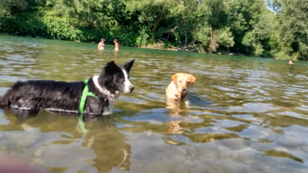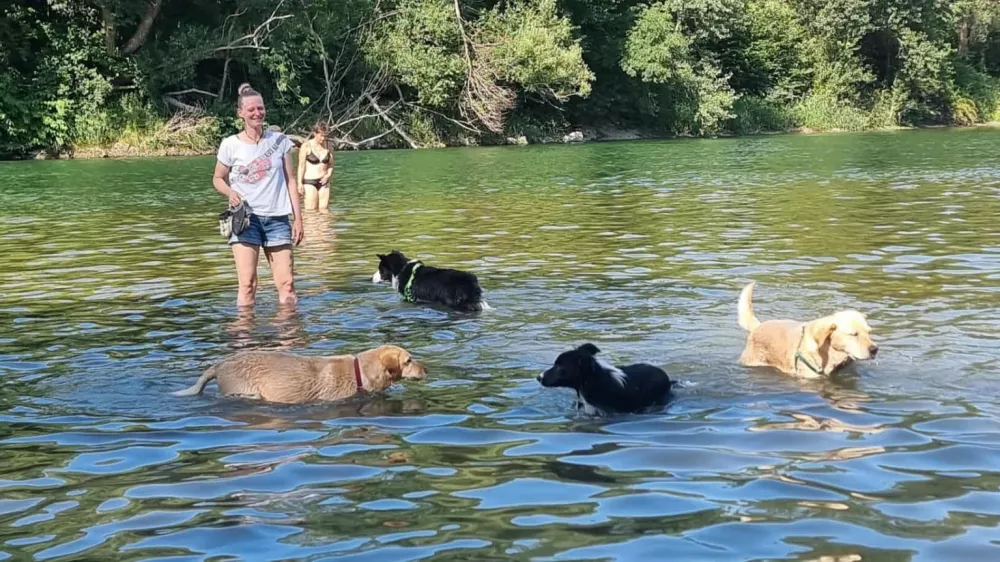 Da je bilo veselje ob vodi še večje oziroma še glasnejše, pa je poskrbela psička Lola. »Že dobro uro ji mečem kamne v vodo. Sploh se ne naveliča,« je med dvema metoma povedala lastnica, ki se je odločila, da še sama zabrede v reko in nato v globljem delu kanala tudi zaplava. Seveda pa niso vsi psi navdušeni nad vodo.