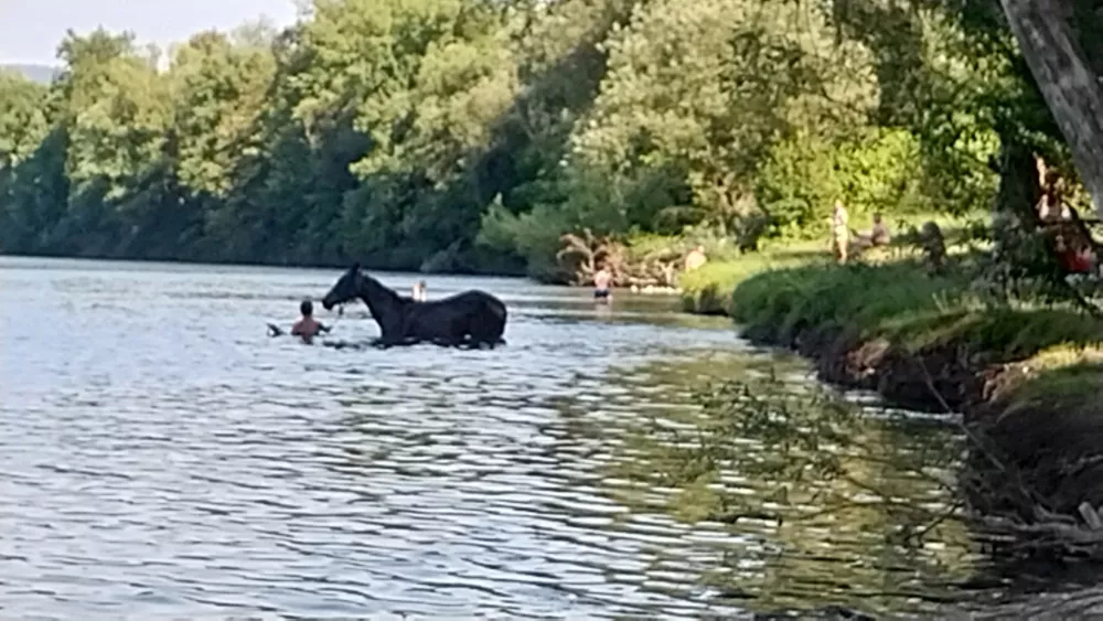 Tudi sami smo se previdno in kar po vodi sprehodili do drugega dela plaže, kjer se je namesto pasjega laježa slišal otroški smeh. Samo nekaj minut kasneje pa je vse na brežini Save navdušil črni žrebec z mladenko v sedlu. Počasi in graciozno sta skupaj stopila v vodo in se po njej sprehodila. »Vsekakor pogled, ki vzame dih,« sta komentirali mladi dekleti, ki sta plažo in hlad sence izkoristili za branje knjige.