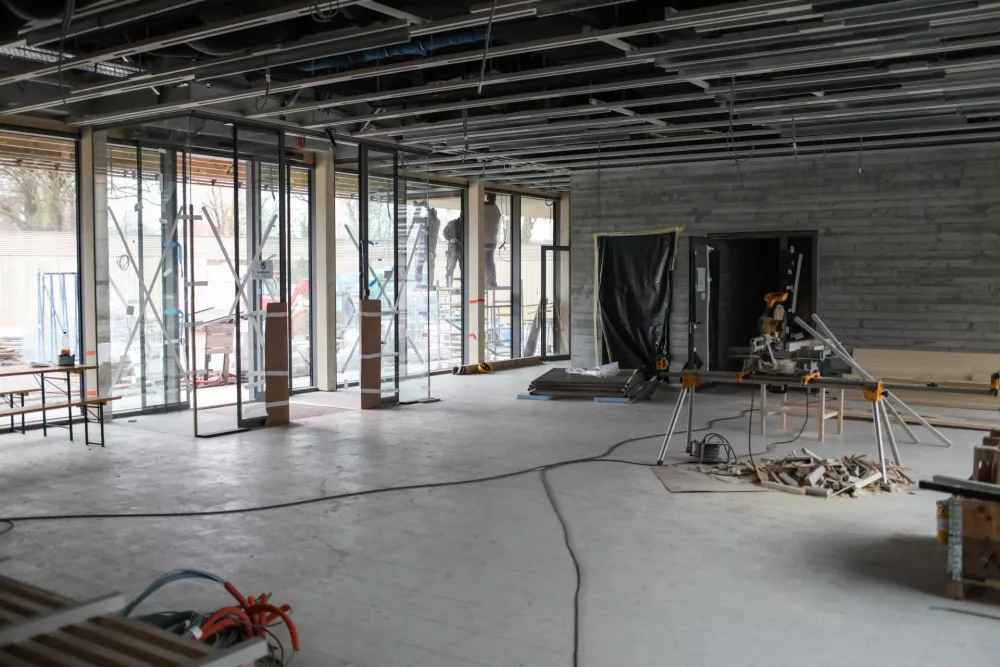 Gostinski lokal oziroma kavarna bo na levi strani vhodne avle, na desni pa bo recepcija kopališča. Foto: Bojan Velikonja