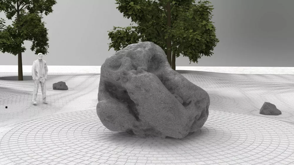 »Srž najine intervencije je ponuditi družbeno infrastrukturo v soseščini, kar so miza in stoli. Pri čemer je bistvena ambicija zasnove, da se bo lahko čim večji del mikrolokalne skupnosti usedel za skupno mizo,« pravi Aleksander Vujović, ki se pod projekt podpisuje z Vukom Ćosićem. Avtorja sta z betonsko mizo z betonskimi in kovinskimi stoli zasnovala uporabni in simbolni objekt, ki bo svoje mesto dobil v kareju soseske, pri čemer bodo mikrolokacijo določili naknadno.