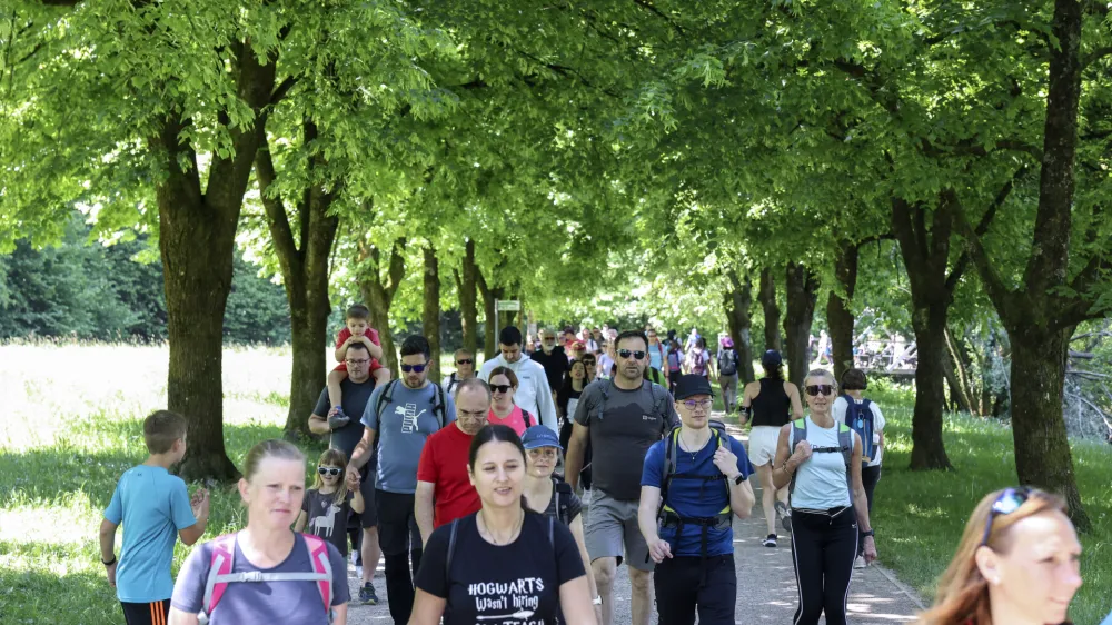 Na poti okoli Ljubljane, ki ob svojem zgodovinskem pričevanju predstavlja tudi enega največjih mestnih parkov, se je v soboto trlo pohodnikov različnih starosti. Pod bujnimi krošnjami dreves so na odseku pred eno od kontrolnih točk ob Koseškem bajerju, kjer so udeleženci prejeli žig na svoj pohodniški kartonček, hodili pari in prijatelji različnih generacij, sodelavci, sosedje, družine z majhnimi otroki in druge pohodniške sestave.