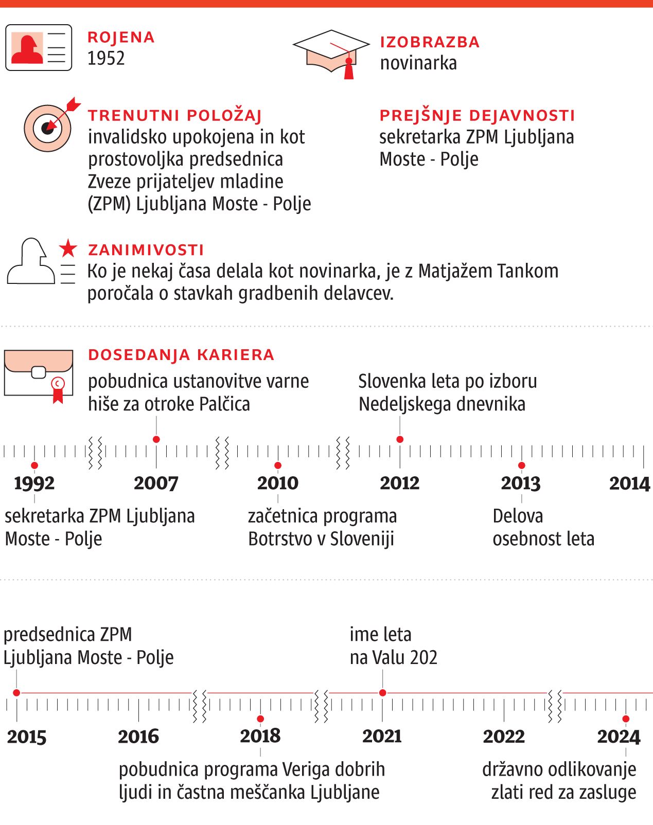 Pojem pomoči ljudem v stiski je bila v Sloveniji zagotovo Anita Ogulin, prostovoljka in dolgoletna predsednica vseslovenske humanitarne organizacije Zveza prijateljev mladine (ZPM) Ljubljana Moste - Polje, ki se je nedavno preimenovala v Zvezo Anite Ogulin in ZPM. V začetku minulega tedna pa je humanitarka poleg priznanj iz preteklih let, denimo Slovenka leta po izboru Nedeljskega dnevnika in častna meščanka Ljubljane, prejela še eno. Za življenjsko delo so ji podelili državno odlikovanje zlati red za zasluge.