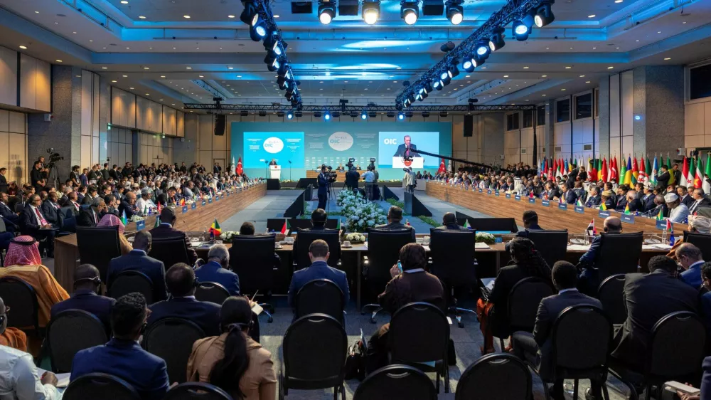 Erdogan je na srečanju organizacije, ki združuje 57 držav, Zahod obtožil, da Izraelu nudi neomajno podporo.