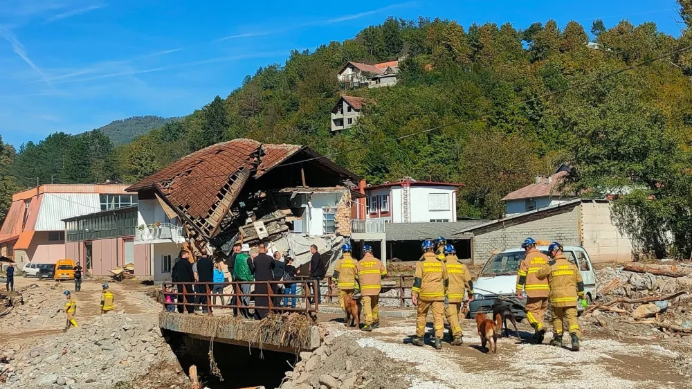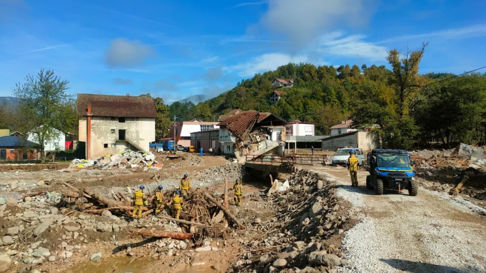 Danes dopoldan je 🇸🇮 ekipa tehničnih reševalcev in vodnikov reševalnih 🦮 nadaljevala z iskanjem pogrešanih oseb na prizadetem območju. Po koncu iskanja bo enota nudila podporo pri aktivnostih s težko mehanizacijo, ekipa za upravljanje z zrakoplovi pa preiskuje širše območje 🇧🇦. pic.twitter.com/Gr0VpHCFkZ