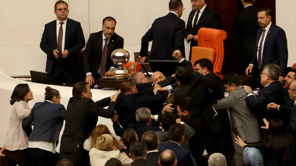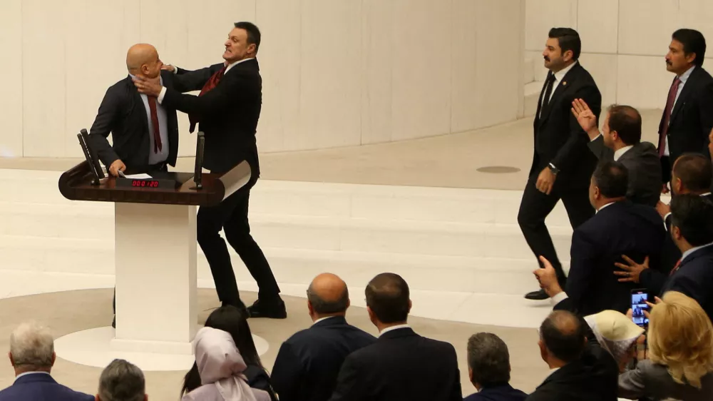 Pripomba je sprožila jezne odzive poslancev vladajoče stranke, zaradi česar je predsednik parlamenta odredil odmor. Medtem je nekdanji nogometaš in poslanec Erdoganove stranke AKP Alpay Ozalan stopil do govorniškega odra in Sika porinil na tla. V pretepu, ki je sledil, sta bila poškodovana najmanj dva opozicijska poslanca.