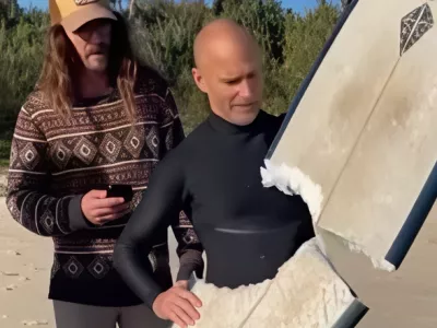 Sedel na deski, ko mu jo je pregriznil morski pes