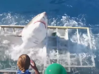 (VIDEO) Morski pes prebil rešetke kletke, ko je bil v njej potapljač