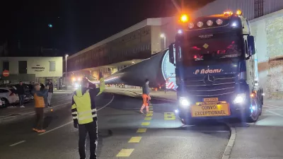Najzahtevnejša je bila prva. Pred novim luškim vhodom se je ob začetku zahtevne operacije zbrala številna ekipa. Izkušeni šoferji tovornjakov in njihovi pomočniki so si izmenjevali še zadnja navodila. Spremljevalna vozila izrednega tovora so prižgala utripajoče luči. Konvoj so spremljali tudi policisti in začasno zaprli promet na cesti mimo pristanišča. Za vsak primer so začetek akcije spremljali tudi reševalci. Da je tovor nekaj posebnega, so se strinjali tudi člani uprave Luke, ki so si prišli ogledat manever. »Tako velikih vetrnic še nismo pretovarjali,« je spomnil delavski direktor Vojko Rotar. In se je začelo. Najprej vzvratno na cesto, potem pa dobesedno nekaj centimetrov od bližnjih stavb, tudi na pločnike, če je bilo treba. Spremljevalci v odsevnih jopičih so sproti podstavljali lesene deske, da so kolesa tovornjaka lažje zapeljala čez robnike, in z mahanjem usmerjali manevriranje na kritičnih točkah. Na poti do avtoceste so že prej odstranili stebre obcestne razsvetljave, prometne zrake in veje dreves, ki bi lahko ovirale pot. Če je bilo treba, so kakšen dodatni prometni znak odrezali kar med potjo. Po dveh urah so prvo vetrnico le spravili iz mestnega jedra in prevozili nekaj krožišč.