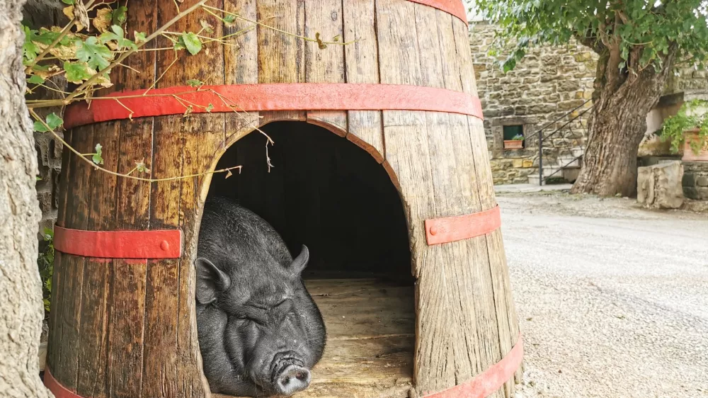 In če lahko rečemo, da so se pri San Mauru zelo posodobili, je treba reči, da sta simbola hiše še vedno na svojem mestu. Gre za dva neverjetno debela prašiča, naslednika tistih prvih dveh izpred mnogih let. Govorimo o Điđiju in Pepi, menda vietnamske in tajske pasme, ki se nepredvidljivo, trmasto in razmeroma počasi premikata okoli hiše, pri tem pa spuščata glasne zvoke nekje med brundanjem in smrčanjem. Nad osnovno lovsko tartufarsko funkcijo, zaradi katere so tovrstne prašiče nabavljali, so že zdavnaj obupali, saj so preveč okorni, so pa zato z njihovo podobo opremljene vse etikete njihovih izdelkov. Če pa vam ni do velikih prašičev, lahko ob prihodu opazujete tudi previdnega in veliko bolj discipliniranega mačka.
