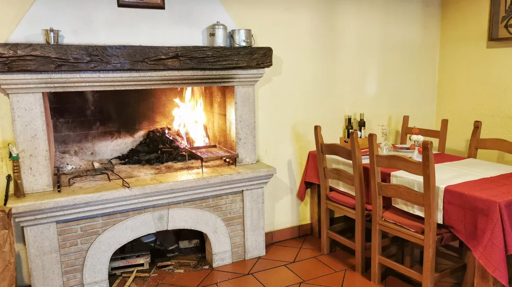 Eden od adutov pri San Mauru je priročen kamin sredi velike jedilnice, v katerem pečejo mesnine in obenem grejejo goste, podobno toplino dajejo peči marsikje po Istri in v bližnjih italijanskih gostilnah, zato se čudimo, da je takšnih priprav po Sloveniji tako malo. V kaminu nad žerjavico pečejo biftke, boškarinovo taljato in celo ribeye ameriškega goveda, mi pa smo se odločili za klasično istrsko, pa tudi daleč najcenejšo mesnino z rešetke: ombolo oziroma prašičkove medaljone (13 evrov), ovite v slanino, ki jim dodajo še gorgonzolo. Sijajno pečeni kosi mesa, lahko bi jih kar še jedli. Moramo pa opozoriti, da se k mesu vse priloge štejejo dodatno, s poprovo omako, povprečno solato z vrta in kislim zeljem se je cena pečene svinjine podražila za 14 evrov.