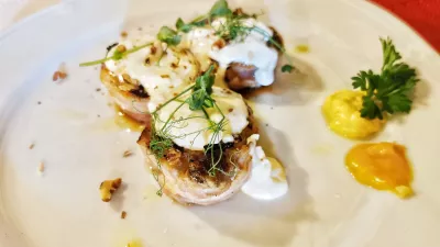 Pri toplih predjedeh je, podobno kot povsod v notranjosti Istre, veliko možnosti. Fuži, pljukanci in njoki se družijo z bogatimi omakami, golaži, gobami in seveda tartufi. Če hočete na testeninah bele tartufe, vas bo to olajšalo za 40 evrov. Nam se je zdela bolj privlačna in cenovno znosnejša radodarna porcija pljukancev s kokošjo.