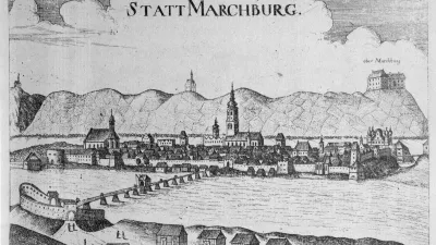 Naselbina ni nastala pod samo trdnjavo, in sicer zaradi pristave pod gradom in tudi zaradi močno zamočvirjenega jugozahodnega območja. Razširila pa se je vzdolž današnje Koroške ceste z iztekom v današnji Glavni trg, na katerem sta se srečali pomembni poti iz Koroške proti Ptuju in iz Ljubljane proti Gradcu. Ko se je majhno naselje pod gradom leta 1209 že omenjalo kot trg, leta 1254 pa kot mesto, so meščani kmalu zatem okrog mesta zgradili dva kilometra dolgo mestno obzidje ter ga utrdili z vsaj trinajstimi obrambnimi stolpi. Še danes so ohranjeni Sodni stolp, Tscheligijev stolp, Židovski stolp in Vodni stolp. Mesto so pomagali ohraniti celo pred turškimi vpadi v 15. stoletju.