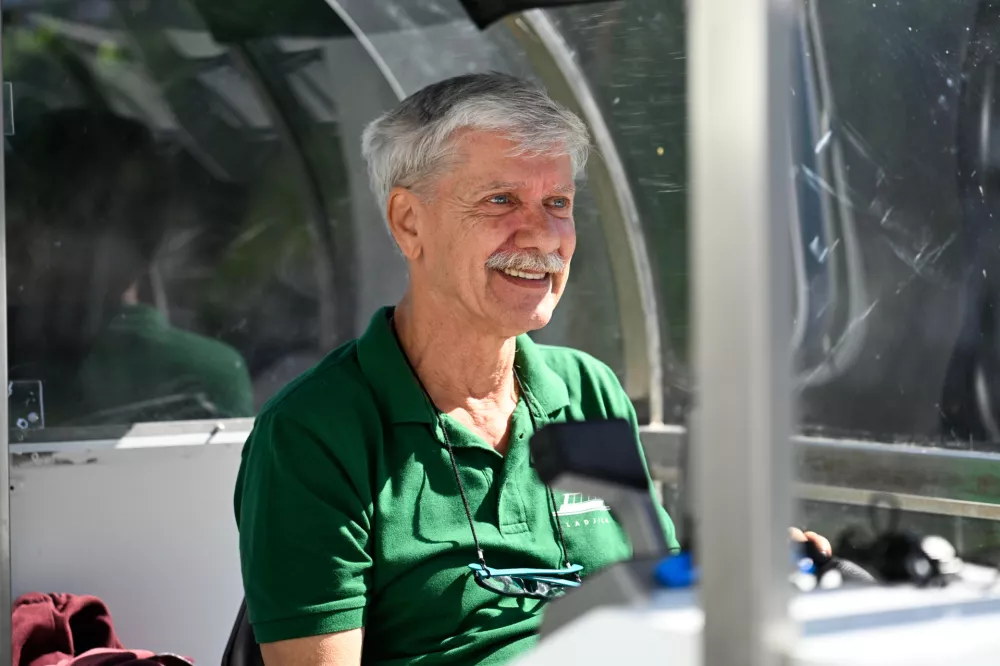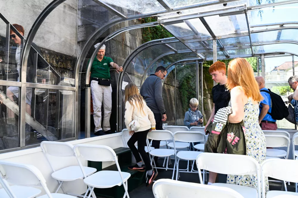 Turisti, ki so se odločili za prvo dopoldansko vožnjo z ladjico, so hitro zasedli mesta na sprednjem delu ladjice. Že pri Šuštarskem mostu je Tim Hewitson iz Anglije prijel fotoaparat in začel fotografirati okolico. »Reka je zares čudovita, tako kot vsa arhitektura okoli,« je povedal. Čeprav nutrij ni bilo na vidiku, je potrdil, da bi te z veseljem ujel v kader. »Z ženo sva vožnjo z ladjico načrtovala kot prvo aktivnost v Ljubljani. Zdi se nama, da je to dober uvod v najino potovanje. Vidiva lahko, kako reka potuje in kakšno je mesto,« je navedel razlog za vožnjo.