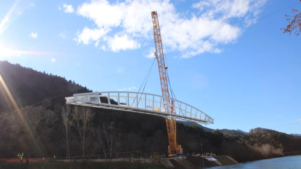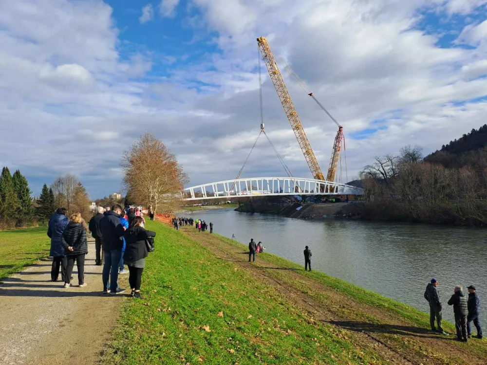 Postavitev mosta se je začela ob deveti uri, končana pa bo predvidoma do konca dneva. Most v dolžino meri 80 metrov, širok pa je tri metre in pol. Kdaj se bodo po njem lahko zapeljali prvi kolesarji, še ni jasno, saj ga bo potrebno po namestitvi na betonske temelje še dokončno zabetonirati. Kot so izpostavili na občini, je umeščanje mostu izjemno zapleten postopek.