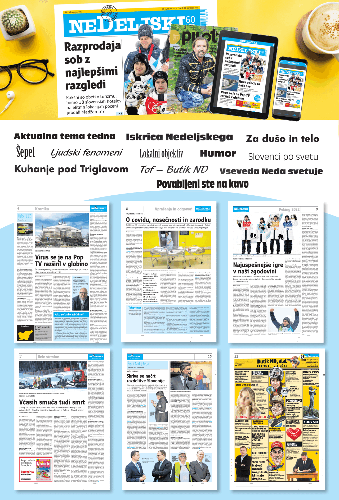 Naročnina na tiskano izdajo Nedeljskega dnevnika vam omogoča brezplačen, neomejen dostop do vsebin v mobilni aplikaciji Nedeljski. Po prenosu aplikacije na telefon ali tablico vpišite internetno kodo, ki jo najdete na računu za naročnino. Pomembno ‒ v sklopu ene naročnine lahko do vsebin v mobilni aplikaciji brezplačno dostopata dva uporabnika.